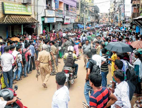 গোদের উপর বিষ ফোঁড়া পুলিশি নিরাপত্তা। ভিড় ঠেলে ব্যাঙ্কে ঢুকতে গেলে প্রথমেই পুলিশি জিজ্ঞাসার মুখে পড়তে হচ্ছে সাধারণ গ্রাহকদের। পুলিশ তল্লাশি চালিয়ে দেখে নিচ্ছে টেটের ফর্ম নেওয়ার জন্য কেউ গ্রাহক সেজে ব্যাঙ্কে ঢুকছে কিনা।