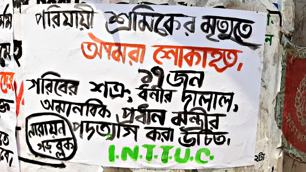 নারায়ণগড়ে তৃণমূলের শ্রমিক সংগঠনের পোস্টার। নিজস্ব চিত্র