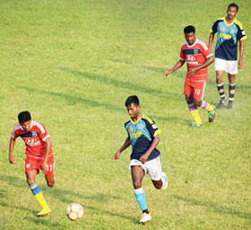 অরবিন্দ স্টেডিয়ামে চলছে খেলা। ছবি: সৌমেশ্বর মণ্ডল।