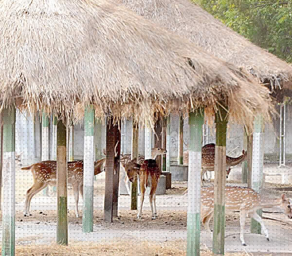 ছায়ায় ঠাঁই মেদিনীপুর চিড়িয়াখানায়। ছবি: সৌমেশ্বর মণ্ডল।