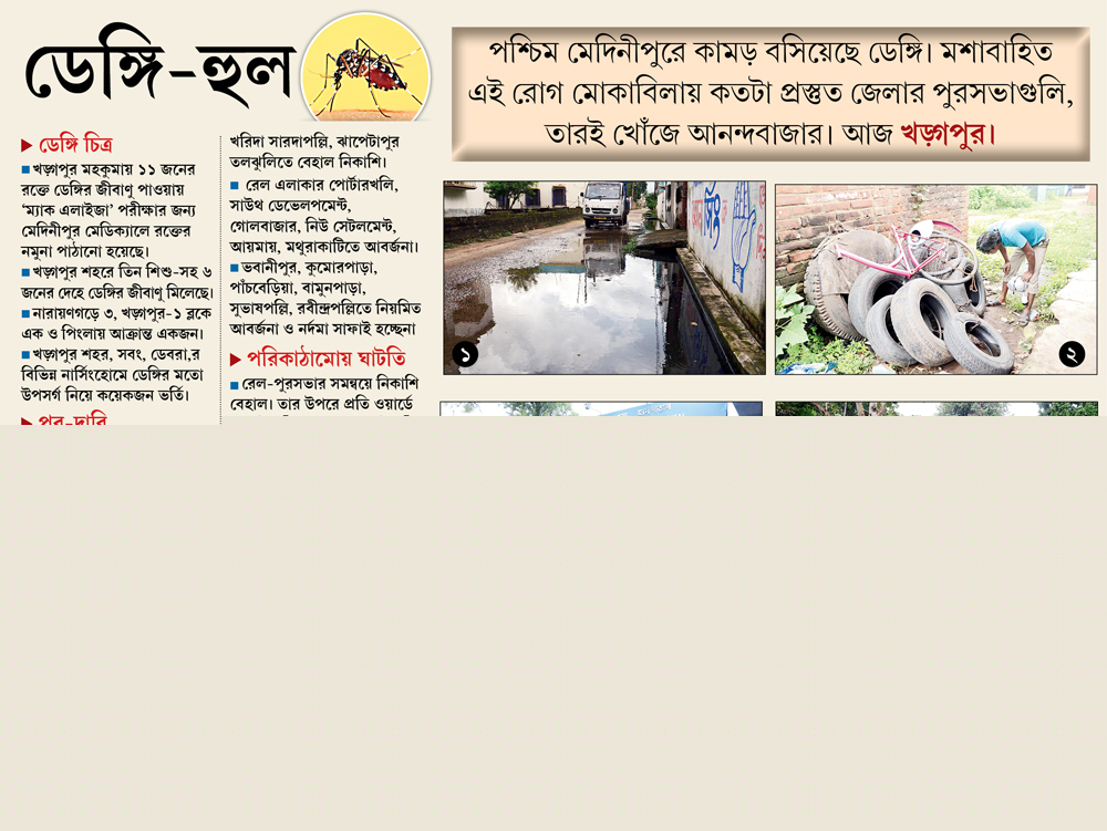 পশ্চিম মেদিনীপুরে কামড় বসিয়েছে ডেঙ্গি। মশাবাহিত এই রোগ মোকাবিলায় কতটা প্রস্তুত জেলার পুরসভাগুলি, তারই খোঁজে আনন্দবাজার। আজ খড়্গপুর।পশ্চিম মেদিনীপুরে কামড় বসিয়েছে ডেঙ্গি।