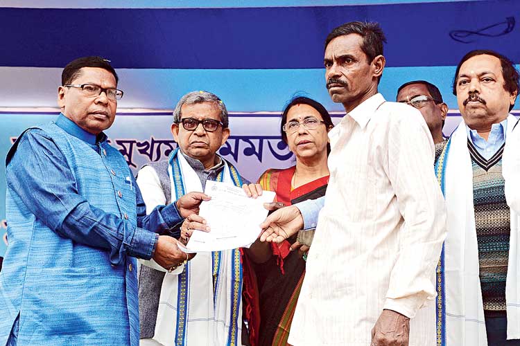 ‘কৃষকবন্ধু’-এর ফর্ম পেলেন। সঙ্গে বাড়তি পাওনা খিচুড়ি। খাওয়া শেষে লস হেমরম নামে এক যুবক বলছিলেন, ‘‘খিচুড়িটা খারাপ ছিল না। মাংস থাকলে জমে যেত!’’