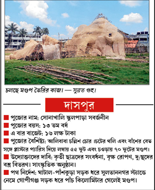 পুজোর নাম: সোনাখালি স্কুলপাড়া সবর্জনীন। পুজোর বয়স: ১৩ তম বর্ষ। এ বার বাজেট: ১৬ লক্ষ টাকা