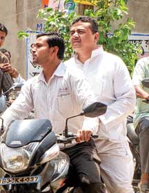 তমলুকে মোটরবাইকে চড়েই প্রচারে চলেছেন শুভেন্দু অধিকারী।