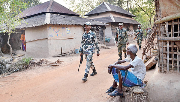 গ্রামের পথে কেন্দ্রীয় বাহিনীর টহল। কেশপুরে।
