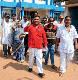 মনোনয়ন পেশের পর সস্ত্রীক সত্যদেও শর্মা।