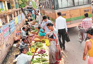 জেল মোড়ে রাস্তার ধারেই বসেছে বাজার।