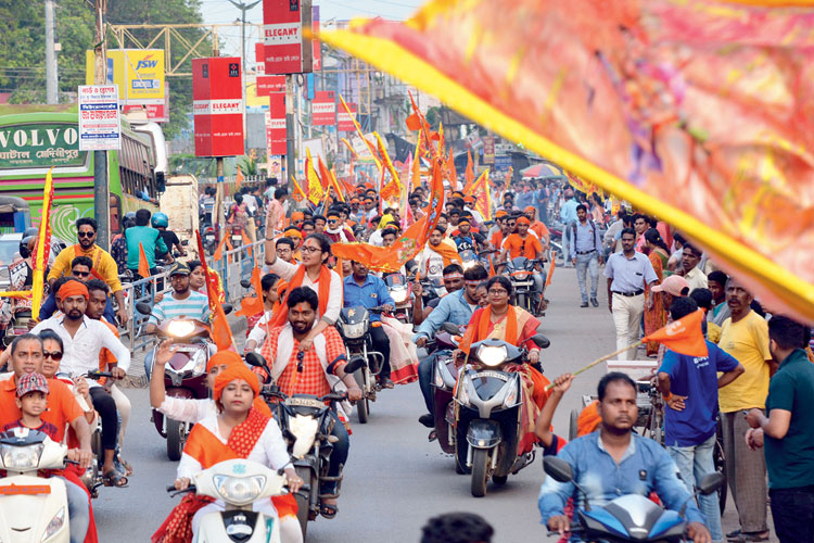 শনিবার বিকেলে মেদিনীপুরে ‘শ্রী রামনবমী উৎসব সমিতি’র উদ্যোগে বাইক মিছিল বেরোয়। সমিতির যুগ্ম সম্পাদক আশীর্বাদ ভৌমিক এবং মলয় দাস। আশীর্বাদ বিজেপির যুব সংগঠন যুবমোর্চার জেলা সভাপতি। মিছিলে ছিল জাতীয় পতাকাও। ‘জয় শ্রীরাম’-এর পাশাপাশি ‘হিন্দুস্তান জিন্দাবাদ, পাকিস্তান মুর্দাবাদ’- স্লোগানও শোনা যায়। তৃণমূলের জেলা সভাপতি অজিত মাইতি বলেন, ‘‘রামনবমীর মিছিলে জাতীয় পতাকা থাকা অন্যায়।’’ বিজেপির রাজ্য সম্পাদক তুষার মুখোপাধ্যায়ের বক্তব্য, ‘‘দেশপ্রেমের প্রচারেই উৎসাহী যুবকেরা জাতীয় পতাকা রেখেছিলেন।’’