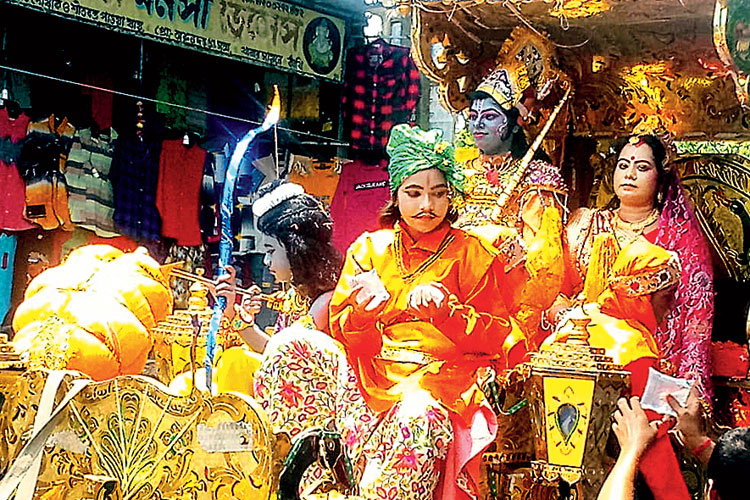 রামনবমীতে শোভাযাত্রায় রাম-সীতা। কাঁথিতে। নিজস্ব চিত্র