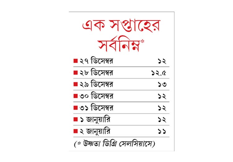 গত সাতদিনের মধ্যে চারদিনই মেদিনীপুরের সর্বনিম্ন তাপমাত্রা ছিল ১২ ডিগ্রি। শেষ কবে তাপমাত্রা অনেকটা নেমেছিল? মেটিওরোলজি পার্ক সূত্রে খবর, ২০১৬ সালের ডিসেম্বরের দ্বিতীয় সপ্তাহের শেষ দিকে এমন পরিস্থিতি হয়েছিল। ওই সময়ও একদিন তাপমাত্রা ৭.৮ ডিগ্রি হয়ে যায়। ওটাই ছিল ওই মরসুমে মেদিনীপুরের সর্বনিম্ন তাপমাত্রা। এখন তাপমাত্রা যেখানে ঘোরাফেরা করছে, তাতে শীত আরও কিছুদিন থাকবে বলেই মনে করছেন আবহবিদেরা।
