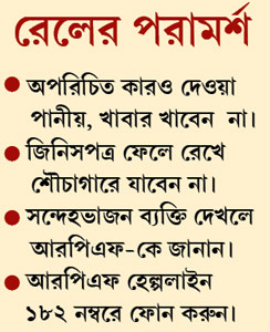 খাবারে মাদক মিশিয়ে রেলযাত্রীদের বেহুঁশ করে মূল্যবান সামগ্রী নিয়ে চম্পট দেওয়া— দীর্ঘদিন ধরেই এই পেশায় হাত পাকিয়েছিল ওড়িশার জগৎসিংহপুরের যুবক দেবরাজ রাউত। আগে বারবার চেষ্টা করেও ওই যুবককে ধরা যায়নি। সোমবার যাত্রীদের সামগ্রী লুঠ করে পালানোর সময় দেবরাজকে হাতেনাতে পাকড়াও করেন রেলের অপরাধ দমন শাখার আধিকারিকেরা। তাকে খড়্গপুর রেল পুলিশের হাতে তুলে দেওয়া হয়েছে।
