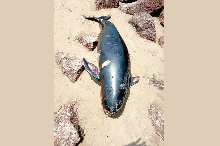 নিউ দিঘার সৈকতে মৃত ডলফিন। —নিজস্ব চিত্র