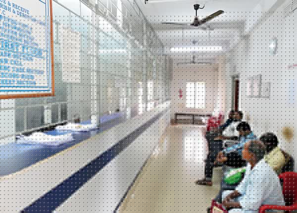 দাসপুরে ভূমি ও ভূমি সংস্কার দফতরে বেলা ১২টাতেও কর্মীর দেখা নেই। বসে আছেন কাজে আসা লোকজন। ছবি: কৌশিক সাঁতরা