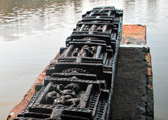 আড়গোড়া দিঘিতে পাওয়া প্রাচীন দশ মহাবিদ্যা মূর্তি খোদাই করা পাথরের স্তম্ভ।