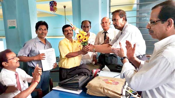 বার অ্যাসোসিয়েশনে কংগ্রেস প্রার্থী নবকুমার নন্দ (হলুদ শার্ট)। নিজস্ব চিত্র