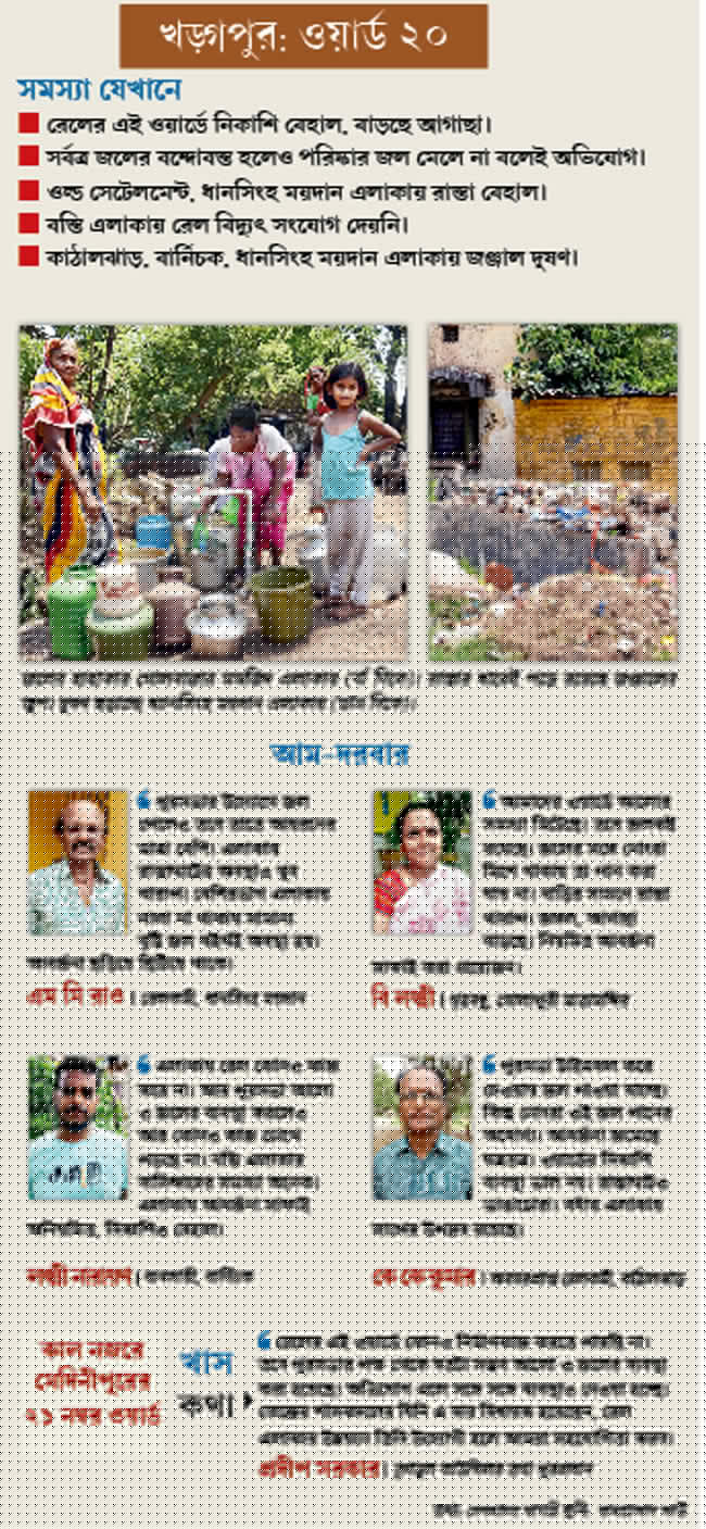 মেদিনীপুর-খড়্গপুর দুই শহরেই উন্নয়ন নিয়ে বিস্তর ঢক্কানিনাদ। অভিযোগও প্রচুর। এ সবের মাঝে ঠিক কেমন আছে দুই শহর — খোঁজ নিল আনন্দবাজার। আজ খড়্গপুর। মেদিনীপুর-খড়্গপুর দুই শহরেই উন্নয়ন নিয়ে বিস্তর ঢক্কানিনাদ। অভিযোগও প্রচুর। এ সবের মাঝে ঠিক কেমন আছে দুই শহর — খোঁজ নিল আনন্দবাজার। আজ খড়্গপুর।