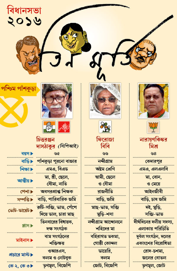 পশ্চিম পাঁশকুড়া বিধানসভা কেন্দ্রের তিন প্রধান প্রার্থীর সম্পর্কে কিছু তথ্য এক নজরে। পশ্চিম পাঁশকুড়া বিধানসভা কেন্দ্রের তিন প্রধান প্রার্থীর সম্পর্কে কিছু তথ্য এক নজরে।
