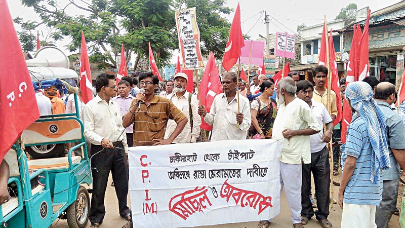 বিক্ষোভ: দাবি আদায়ে রাস্তায়। শুক্রবার নিজস্ব চিত্র