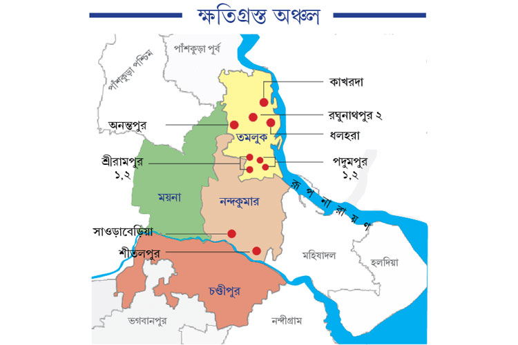 তমলুক ব্লকের অনন্তপুর ১ ও ২, পদুমপুর ১ ও ২, শ্রীরামপুর ১ ও ২, বিষ্ণুবাড় এবং শহিদ মাতঙ্গিনী ব্লকের কাখর্দা, ধলহরা, রঘুনাথপুর-২, নন্দকুমার ব্লকের শীতলপুর, সাওড়াবেড়িয়া ইত্যাদি এলাকা ঘুরে ভেড়ি নিয়ে ক্ষোভের কথাই শোনা গেল এলাকার চাষিদের মুখে। এই সব এলাকায় জমির অধিকাংশেরই মালিক বড় কৃষকেরা। তাদের পরিবারের সদস্যরা ব্যবসা-চাকুরি সহ নানা পেশায় যুক্ত। ফলে চাষের উপর নির্ভরশীলতা নেই বললেই চলে। তাই বার্ষিক ‘লিজ’ চুক্তিতে মোটা টাকার বিনিময়ে জমিতে ভেড়ি তৈরির ছাড়পত্র দিয়ে দিচ্ছে। কিন্তু যে সব চাষির জমির পরিমাণ অল্প, তাঁদেরও ভেড়ির জন্য জমি দিতে চাপ, হুমকি দেওয়া হচ্ছে বলে অভিযোগ। ওই সব চাষিকে চাষের জল পাওয়ার ক্ষেত্রেও বাধা দেওয়ার অভিযোগ উঠেছে।