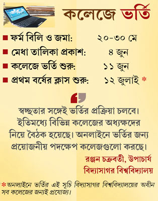 এক বছর আগেও কলেজে ভর্তি ছিল রীতিমতো ঝক্কির ব্যাপার। দুর্নীতির অভিযোগও উঠত বিস্তর। সে সব ঠেকাতে অনলাইনে ভর্তির দাবি ওঠে। কলকাতার কলেজগুলিতে তা বেশ কয়েক বছর আগে চালু হয়ে গেলেও মেদিনীপুরের মতো মফস্সলে হয়নি। শেষমেশ ২০১৪ সালে আওতাধীন কলেজগুলোয় অনলাইনে ভর্তি প্রক্রিয়া চালু করার পরিকল্পনা করে বিদ্যাসাগর বিশ্ববিদ্যালয়। প্রাথমিক প্রস্তুতি শুরু হয়। সবক’টি কলেজে ‘অনলাইন কমিটি’ গঠন করার পরামর্শ দেওয়া হয়। ছাত্রছাত্রীদের খুঁটিনাটি জানাতে ‘হেল্প- ডেস্ক’ চালু করার পরামর্শ দেওয়া হয়। দুই মেদিনীপুরের ১০টি কলেজকে ‘নোডাল সেন্টার’ করারও পরিকল্পনা হয়। তবে বিশ্ববিদ্যালয়েরই এক সূত্রে খবর, ২০১৪ সালের এপ্রিলের এই সিদ্ধান্ত বদলে যায় ওই বছর জুনে। কলেজগুলোকে জানিয়ে দেওয়া হয়, অনলাইনে ভর্তি প্রক্রিয়া বাধ্যতামূলক নয়। এ নিয়ে অসন্তোষও দেখা দেয়। পরিস্থিতি দেখে ২০১৫ সাল থেকে কলেজগুলোয় অনলাইন ভর্তি প্রক্রিয়া শুরু করা হয়।