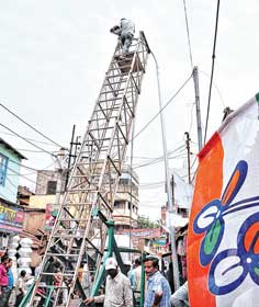 তমলুক শহরে চলছে এলইডি পথবাতি লাগানো।