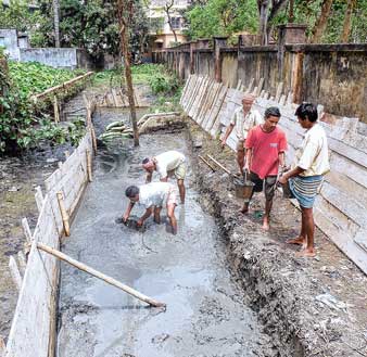 ঘাটাল পুরসভার ১৩ নম্বর ওয়ার্ডে নিকাশির কাজ চলছে।