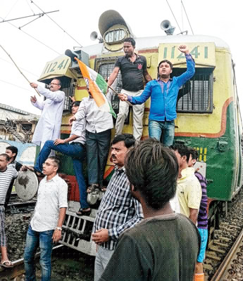 বনধে আটকে ট্রেন। রিষড়ায় নিজস্ব চিত্র।