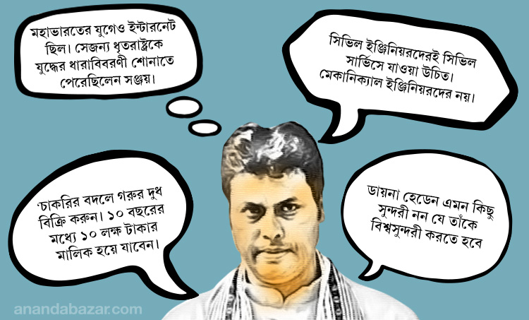 কিন্তু এর পরেও বিপ্লব মুখর। তিনি বলেছেন, ‘‘সিভিল ইঞ্জিনিয়রদেরই সিভিল সার্ভিসে যাওয়া উচিত। মেকানিক্যাল ইঞ্জিনিয়রদের নয়।’’ কেন? বিপ্লবের মতে, সিভিল ইঞ্জিনিয়রদের যেহেতু গঠন সংক্রান্ত জ্ঞান থাকে, এবং সমাজকে গঠন করাই সিভিল সার্ভিস, তাই সিভিল ইঞ্জিনিয়রদেরই উচিত সিভিল সার্ভিসে যাওয়া।কখনও আবার চাকরিপ্রার্থীদের পরামর্শ দেওয়ার সুরে তাঁর বক্তব্য, ‘‘চাকরির বদলে গরুর দুধ বিক্রি করুন। ১০ বছরের মধ্যে ১০ লক্ষ টাকার মালিক হয়ে যাবেন।’’ এর আগেও তিনি বলেছিলেন, ‘‘মহাভারতের যুগেও ইন্টারনেট ছিল। সেজন্য কুরুক্ষেত্র থেকে দূরে থেকেও ধৃতরাষ্ট্রকে যুদ্ধের ধারাবিবরণী শোনাতে পেরেছিলেন সঞ্জয়।’’ নারী সোন্দর্য নিয়েও তিনি ‘অকপট’। বিপ্লবের দাবি, ডায়না হেডেন এমন কিছু সুন্দরী নন যে তাঁকে বিশ্বসুন্দরী করতে হবে!