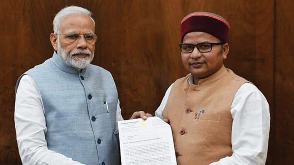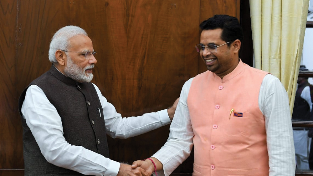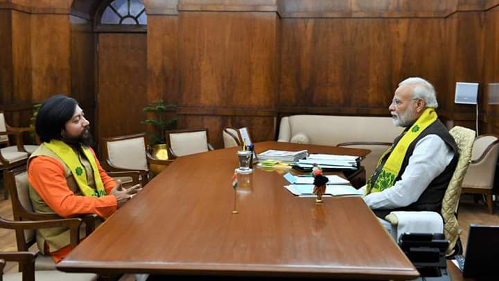 নরেন্দ্র মোদীর সঙ্গে বৈঠকে কোচবিহারের বিজেপি সাংসদ নিশীথ প্রামাণিক।—নিজস্ব চিত্র।