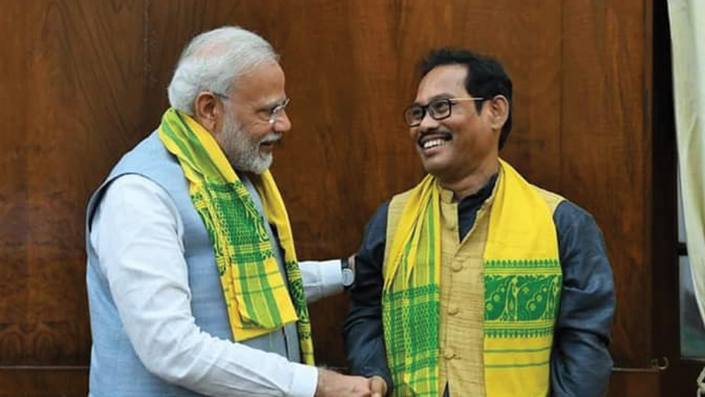 নরেন্দ্র মোদীর সঙ্গে বৈঠকের পর জলপাইগুড়ির বিজেপি সাংসদ জয়ন্ত রায়।—নিজস্ব চিত্র।