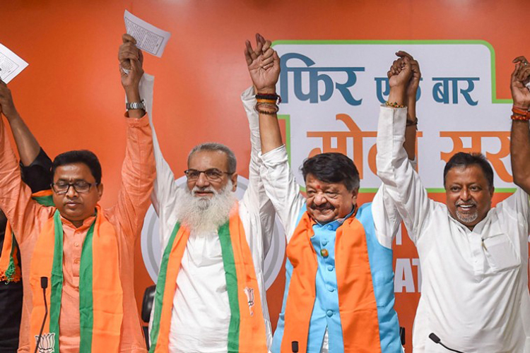২৯ মে মনিরুলের বিজেপিতে যোগ দেওয়ার সেই ছবি। —ফাইল চিত্র।