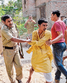 বরকে উদ্ধার করে নিয়ে যাচ্ছে পুলিশ। ছবি : সুদীপ ভট্টাচার্য।