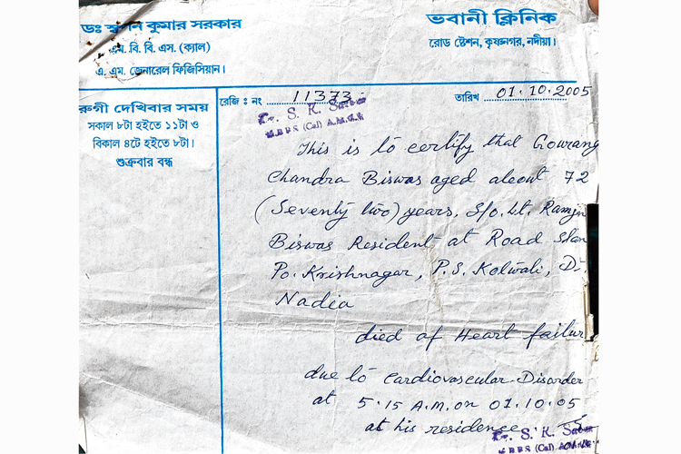 ভুয়ো ডাক্তারের দেওয়া মৃত্যু-শংসাপত্র। নিজস্ব চিত্র