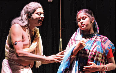 তেহট্ট লালনের শিল্পীদের অভিনীত নাটক ‘অস্তিত্ব’ নাটকের একটি দৃশ্য। কল্লোল প্রামাণিকের তোলা ছবি।