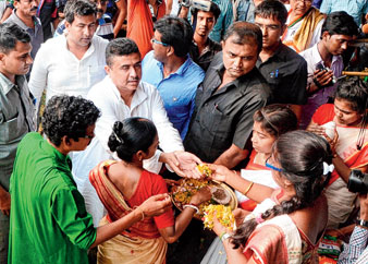 ‘মেনু’র জোরে কর্মী সম্মেলন ভরানোর রেওয়াজ, মুশির্দাবাদে অন্তত নতুন নয়। গত মার্চেই ভাত, ঘন মুগের ডাল, আলু ভাজা, ডিমের ডালনা আর টোম্যাটোর চাটনি সাজিয়ে রেজিনগরের কর্মিসভা কানায় কানায় ভরিয়ে দিয়েছিলেন স্থানীয় তৃণমূল নেতারা। সে সভায় ‘লোক টানতে’, সম্মেলনের শুরুতে একপ্রস্ত জোড়া কলার সঙ্গে এক টুকরো কেক বিলিয়ে কর্মীদের মন পেতে ফাঁক রাখেননি দলীয় নেতারা।