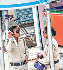গরমে ক্লান্ত দুই ট্রাফিক পুলিশ।