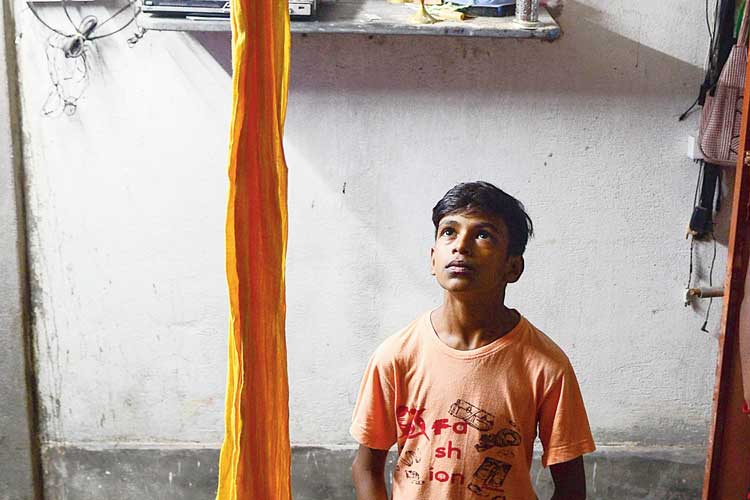 সাক্ষী: এই ফাঁসে ঝুলে মারা গিয়েছে মা। ছেলে মঙ্গল দাঁড়িয়ে সেখানে। বুধবার কোতোয়ালির আমঘাটায়। ছবি: সুদীপ ভট্টাচার্য