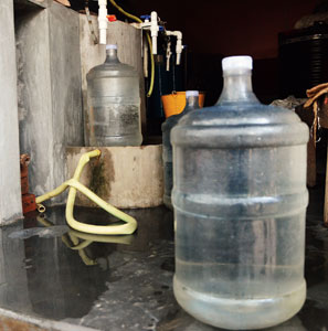 মুর্শিদাবাদের ২৬টা ব্লকের প্রায় সবক’টিতেই পানীয় জলে সহন সীমার অতিরিক্ত আর্সেনিক রয়েছে। সব ব্লকেই ভূগভর্স্থ জলের স্তর দ্রুত নামছে। জেলা প্রশাসনের এই তথ্যকে ‘খুড়োর কল’ করে মুর্শিদাবাদে পরিস্রুত পানীয় জল বিক্রির ব্যবসা দীর্ঘ দিনের। পরিস্রুত পানীয় জল দাবি করে রমরমিয়ে সে বাণিজ্য চললেও, তা আদপে কতটা পরিস্রুত প্রশ্ন রয়েছে তা নিয়েও। সেই ব্যবসায় লাগাম টানতে সম্প্রতি মুর্শিদাবাদের জলসম্পদ অনুসন্ধান দফতর বহরমপুর, বেলডাঙায় তল্লাশি চালায়। তারপরেই জল পরিস্রুত করে বিক্রি করা হয়— এমন তিনটি কারখানা সিল করে দেয়। কেন? দফতরের কর্তাদের দাবি, আইন না মেনে কারখানাগুলি তৈরি হয়েছে। তাই এমন সিদ্ধান্ত।