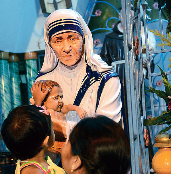 আবেগে ভাসল রানাঘাট বেগোপাড়াও। অন্য দিনের তুলনায় এ দিন প্রার্থনা সভায় হাজির হয়েছিলেন অনেক বেশি মানুষ। আলোয় সেজে উঠেছিল গোটা এলাকা। বসে গিয়েছে বেশ কিছু দোকানপাট। কীসের মেলা গো? পথচলতি লোকের অবাক প্রশ্নে থমকে দাঁড়িয়ে পড়লেন এক প্রৌঢ়। হাসতে হাসতে বললেন, ‘‘মেলার থেকেও বেশি কিছু। মাদার সন্ত হয়েছেন যে। আজ আমাদের অকাল বড়দিন।’’ বেগোপাড়া চার্চের ফাদার সরোজ বিশ্বাস বলছেন, ‘‘আজ, সোমবার মাদারের মৃত্যু দিবস। এ দিনও নানা অনুষ্ঠানের পাশাপাশি মাদারকে নিয়ে একটি নাটকও মঞ্চস্থ হবে।”