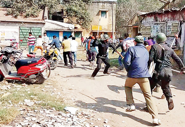 লাঠি চালাল র্যাফ।— নিজস্ব চিত্র