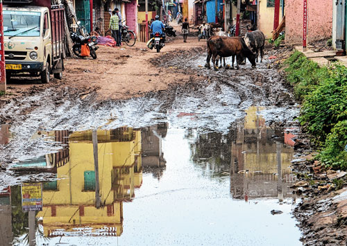 খানাখন্দে ভরা নতুন বাজার যাওয়ার রাস্তা। ছবি: গৌতম প্রামাণিক।