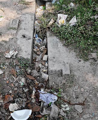 আবর্জনা পড়ে বুজে গিয়েছে নিকাশি নালা। ছবি:সুদীপ ভট্টাচার্য