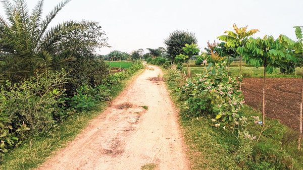 বসন্তপুর-নারায়ণপুরের রাস্তা পাকা হল না এখনও। নিজস্ব চিত্র