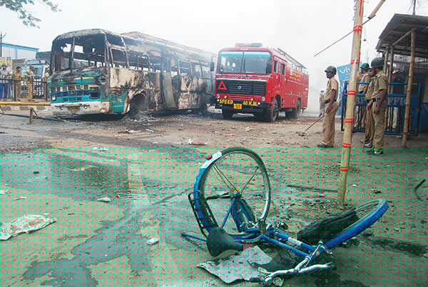 লরির ধাক্কায় ছিটকে পড়ল সাইকেল। পিষে গেল ছাত্রী। রাস্তা অবরোধ করে শুরু হল তাণ্ডব, বাসে-লরিতে আগুন দেওয়া।