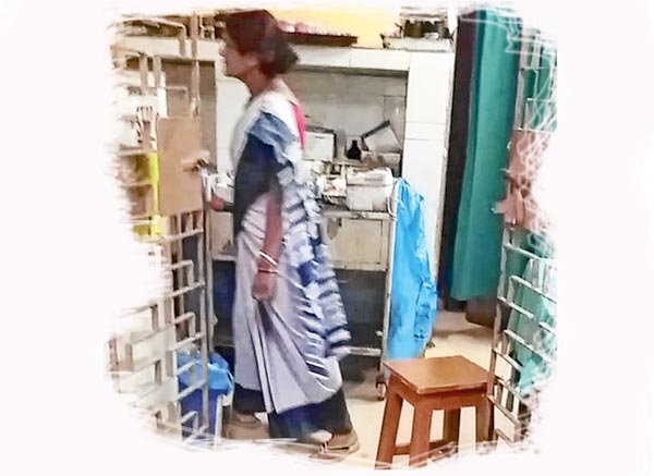 এঁরা সবাই মুর্শিদাবাদ মেডিক্যাল কলেজ হাসপাতালের আয়া। এঁরা দাপিয়ে বেড়ান হাসপাতালের এক তলা থেকে তিন তলা পর্যন্ত সব ওয়ার্ডেই। দিন-রাত ২৪ ঘণ্টা। ভর্তি থাকা রোগীরা পাশাপাশি বিছানায় ফিসফিস করেন। পুরনো রোগী নতুন রোগীকে বলেন, ‘‘সাবধান! ওই নীল-সাদা আয়াদের সমঝে চলবেন। ওরা তৃণমূল।’’ পাল্টা প্রশ্ন, ‘‘সেটা কী করে বুঝলেন?’’ ফিসফিসিয়ে উত্তর, ‘‘ওই শাড়ি দেখেও বুঝছেন না!’’