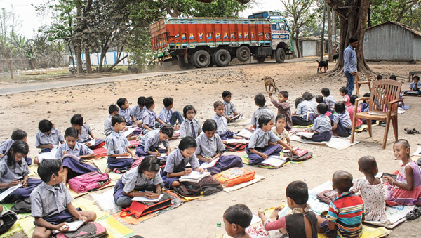 কোথাও বারান্দা সম্বল, কোথাও কৃষ্ণচূড়ার আড়াল। শীত, গ্রীষ্ম, বর্ষা রোদজলের মর্জি মেনে বইখাতা-চাটাই নিয়ে ছোটাছুটি।
