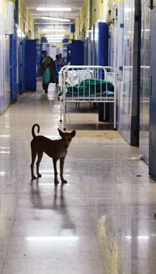 রাতের হাসপাতালে সারমেয় শাসন। ছবি: সুদীপ ভট্টাচার্য