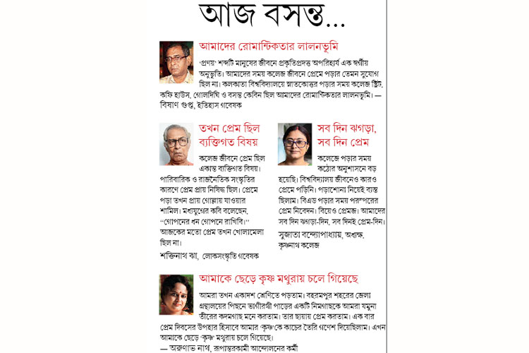 বন্ধুরা চিমটি কাটতে থাকল, ‘আবার ফাগুন কেন, মাঘেই তো কেয়া-কাঞ্চন যোগ রয়েছে, ভ্যালেন্টাইন ডে!’ সে বড় পুরনো সময়, সত্তরের দশক। সাহেবি প্রেম দিবসের কদর তখনও তেমন ঘন হয়নি যে!