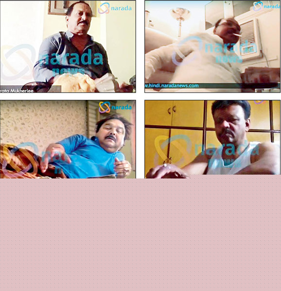 নারদ নিউজের গোপন ক্যামেরায় তোলা ভিডিও ফুটেজে দেখা গিয়েছে, ২০১৪-র লোকসভা ভোটের আগে রাজ্যের ডজনখানেক মন্ত্রী-সাংসদ-মেয়র একটি ভুয়ো কোম্পানির প্রতিনিধির কাছ থেকে লক্ষ লক্ষ টাকা নিচ্ছেন। বিধানসভা ভোটের মুখে গত ১৪ মার্চ থেকে দফায় দফায় প্রকাশিত এই ভিডিওগুলি বিশেষ করে শহরাঞ্চলের মানুষের মনে ভয়ানক ক্ষোভের সঞ্চার করেছে। যা সামাল দিতে নাজেহাল শাসক দল। পায়ের তলার মাটি কেঁপে যাওয়ায় বার বার অবস্থান বদলাতে হয়েছে তৃণমূল নেত্রীকে। গোড়ায় তিনি ফুটেজকে জাল আখ্যা দিয়েছিলেন। পরে প্রচারসভায় ওন্দার প্রার্থী অরূপ খাঁকে দেখিয়ে বলেছেন, ‘‘ও কিন্তু চোর নয়।’’ বাগদার প্রার্থী উপেন বিশ্বাসের পাশে দাঁড়িয়ে বলেছেন, ‘‘উনি কিন্তু সৎ লোক।’’ মানুষের ক্ষোভ কমার লক্ষণ নেই দেখে অভ্যন্তরীণ দলীয় তদন্তের ফাঁপা আওয়াজ দিয়ে অবস্থা সামাল দেওয়ার চেষ্টা করেছিলেন। তার পরে রবিবার কার্যত ভেঙে পড়ে বলেছেন, ‘‘আগে জানলে নিশ্চয়ই ভাবতাম। প্রার্থী ঘোষণার পরে তো আর বদলাতে পারি না!’’ তাঁর এই মন্তব্য নিয়ে দলের মধ্যে বিক্ষোভ দেখা দেওয়ায় এ দিন আবার পুরনো সুরেই ফিরে গিয়েছেন মমতা বন্দ্যোপাধ্যায়। নারদ-ভিডিও-য় টাকা নিতে দেখা গিয়েছে যে সুলতান আহমেদকে, মঙ্গলবার হাওড়ার জয়পুরে একটি নির্বাচনী সভায় তাঁকে পাশে নিয়ে মমতা বলেছেন, ‘‘পাঁচ বছর আমাদের বিরুদ্ধে কেউ দুর্নীতির অভিযোগ তুলতে পারেনি। আর এখন ভোটের সময় চোর-ডাকাত-গুন্ডা বলা হচ্ছে!’’
