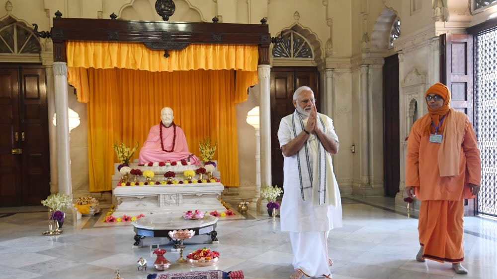 রামকৃষ্ণ মন্দিরে মোদী। নিজস্ব চিত্র।